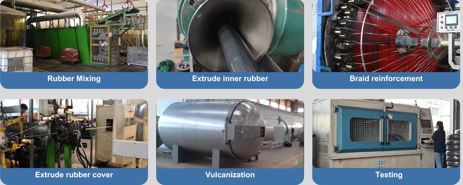 Flexible and robust hoses for manufacturing machinery and heavy-duty hydraulic systems, supporting high pressure and continuous operation.